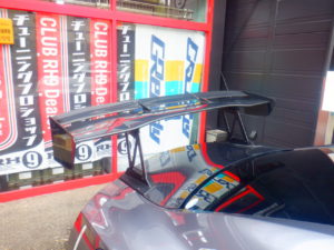 さて、大阪府M様R35は昨日取り付けたカーボントランクに、デモカーと同じVOLTEX製 TYPE5 GTウイングを取り付けました
