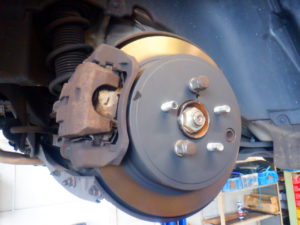 ローターもパッドもかなり減っておりましたので、同時に交換していきます
