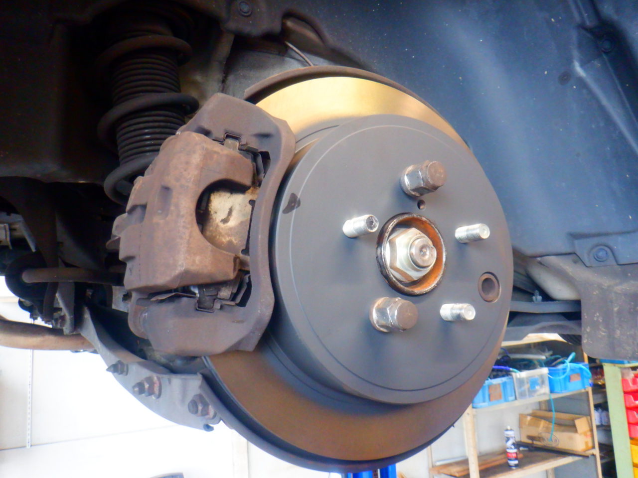 ローターもパッドもかなり減っておりましたので、同時に交換していきます
