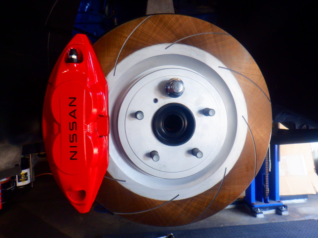 さて、加古川市KさんRZ34はブレーキローターが傷まみれになってしまいましたので?ディクセルFCタイプのブレーキローターに交換する事になりました![]()