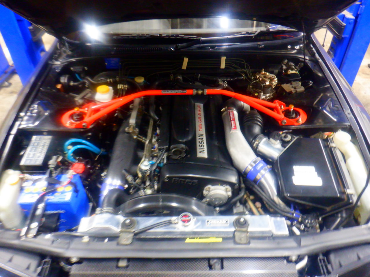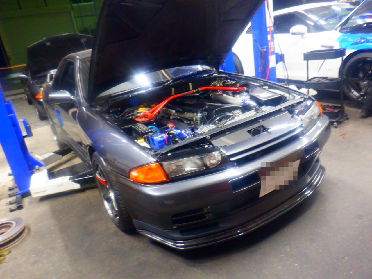 姫路市MさんBNR32はエンジンを降ろす作業に取り掛かりました![]()
