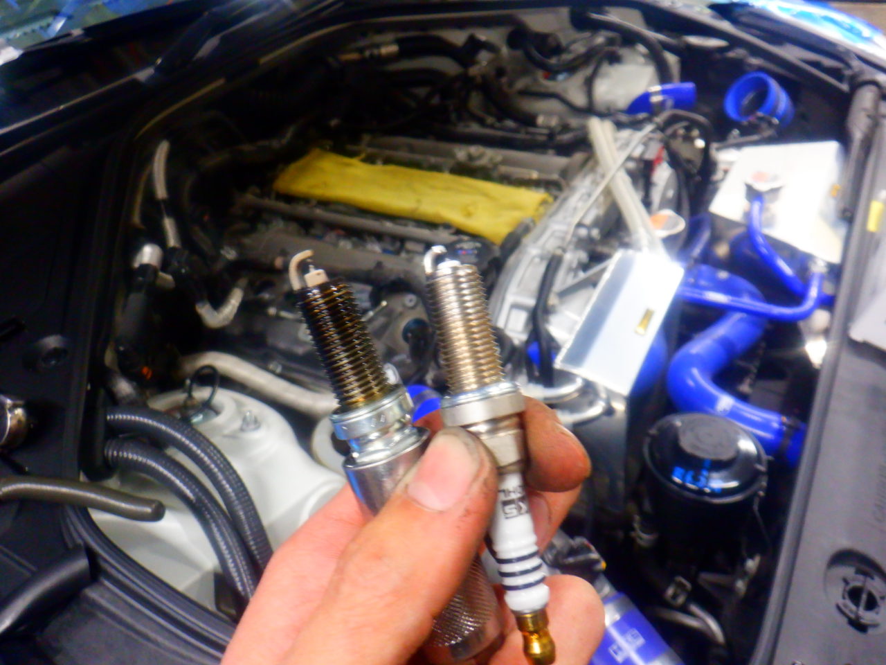 まずはサージタンクを外してプラグ交換![]()