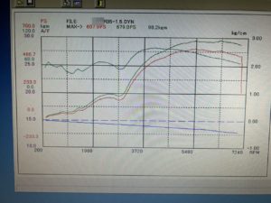 徐々にブースト圧を上げていき、最終150kPaで約680馬力&トルク100キロ出ました![]()