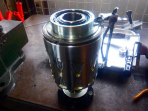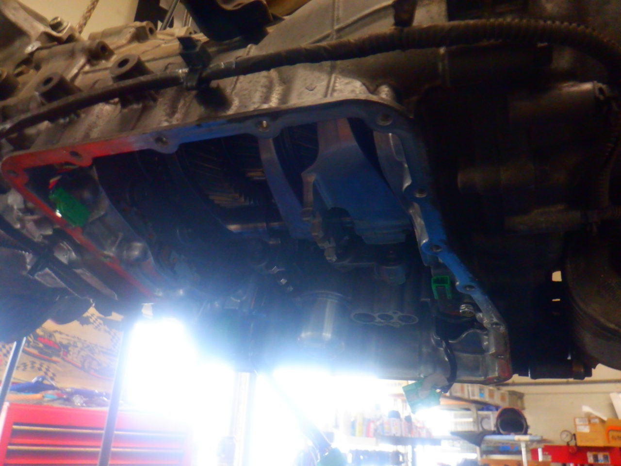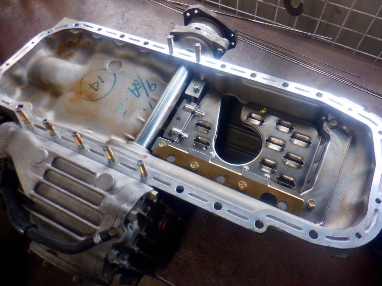 エンジン強化中のRB26は、オイルパンの加工