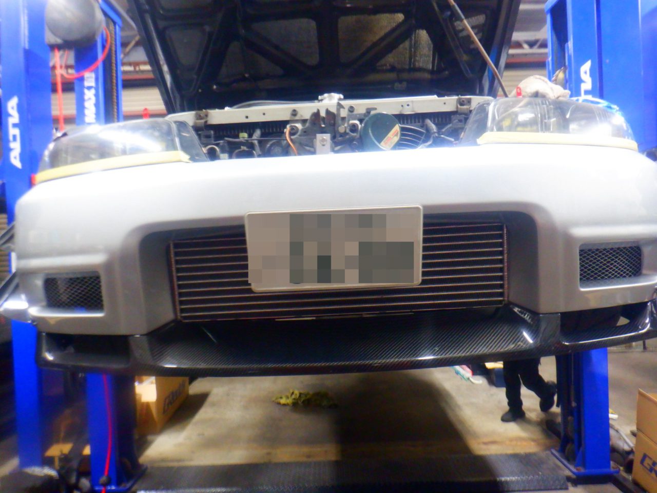 インタークーラーも変更しましたので、接触する箇所を削って微調整