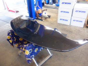 ちょうど割れたカーボンリップスポイラーの補修も終わりましたので、取り付けました