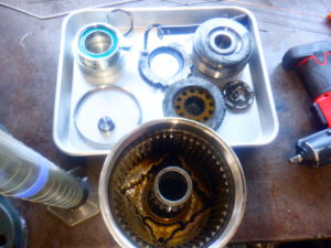 さて、1年間酷使してきたデモカーのミッションを降ろして点検していきます