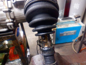 ドライブシャフトブーツが左右とも破れておりましたので、新品交換していきます・・・frown