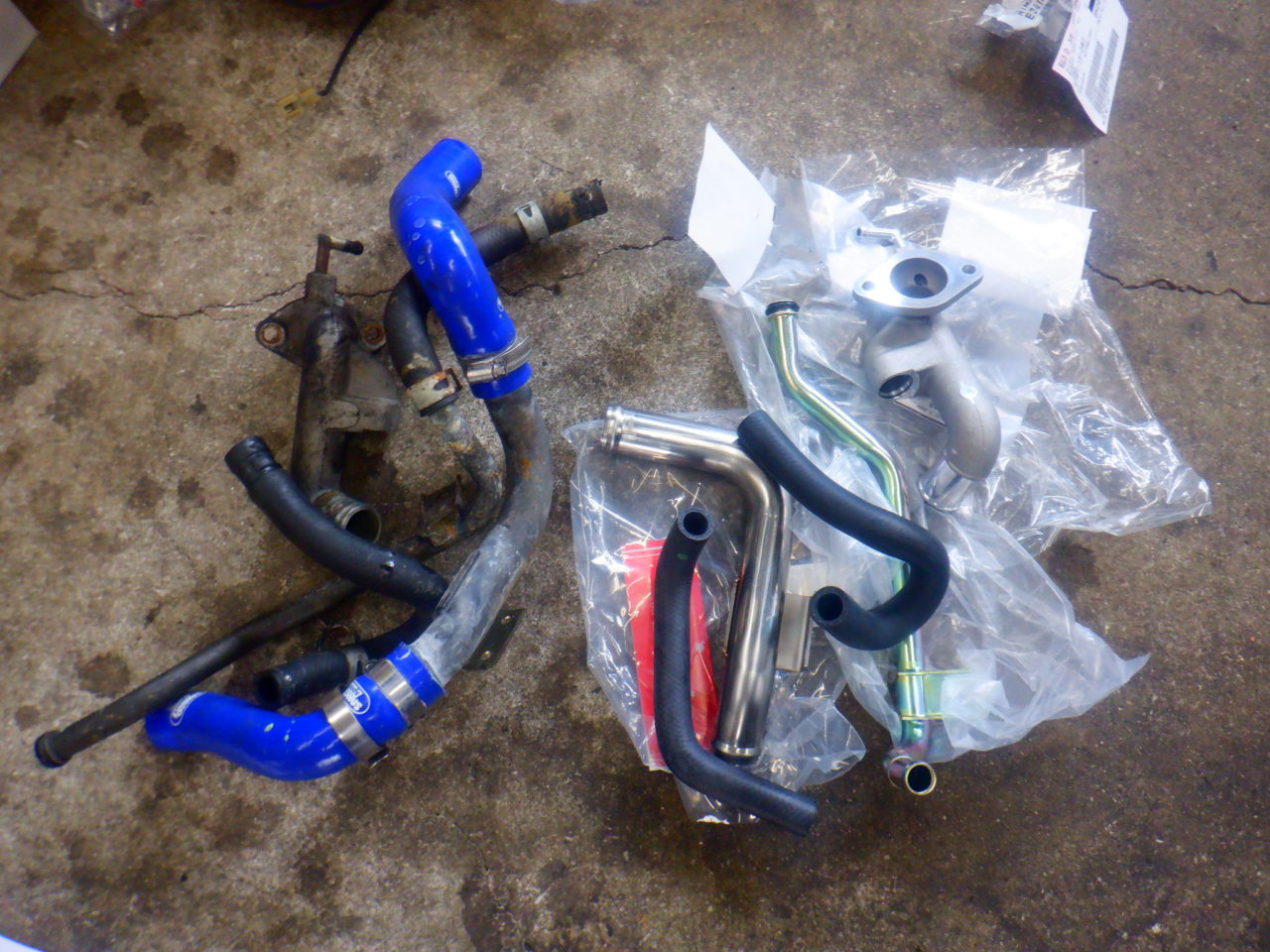 ヒーターホースのバイパスバルブや社外センサー取り付けのアダプターも同時に取り付けました![]()