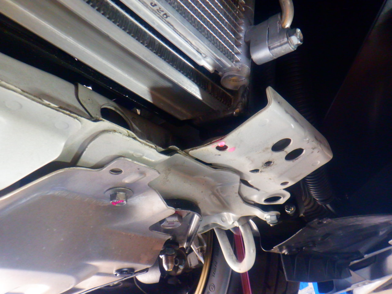 ホイールを交換したらフロントがはみ出してしまいましたので、キャンバー調整していきます
