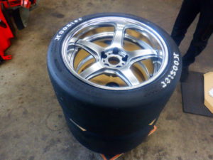 姫路市NさんRZ34に入れるフージャーのドラッグDOTラジアルタイヤが入荷しましたので、ワーク エモーション T5R 2P 12Jに組み込みました