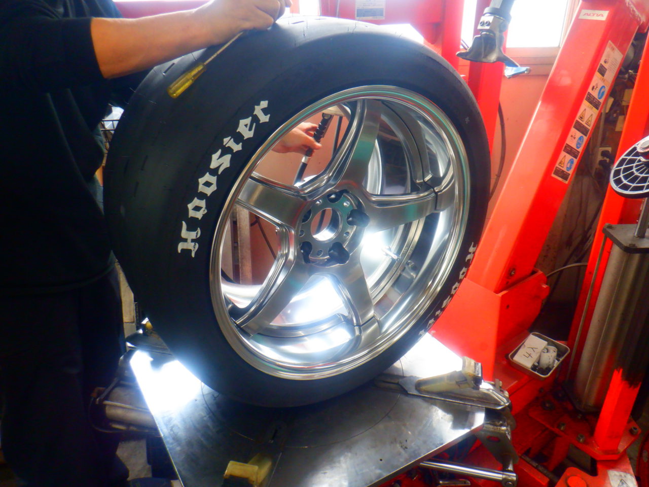 姫路市NさんRZ34に入れるフージャーのドラッグDOTラジアルタイヤが入荷しましたので、ワーク エモーション T5R 2P 12Jに組み込みました