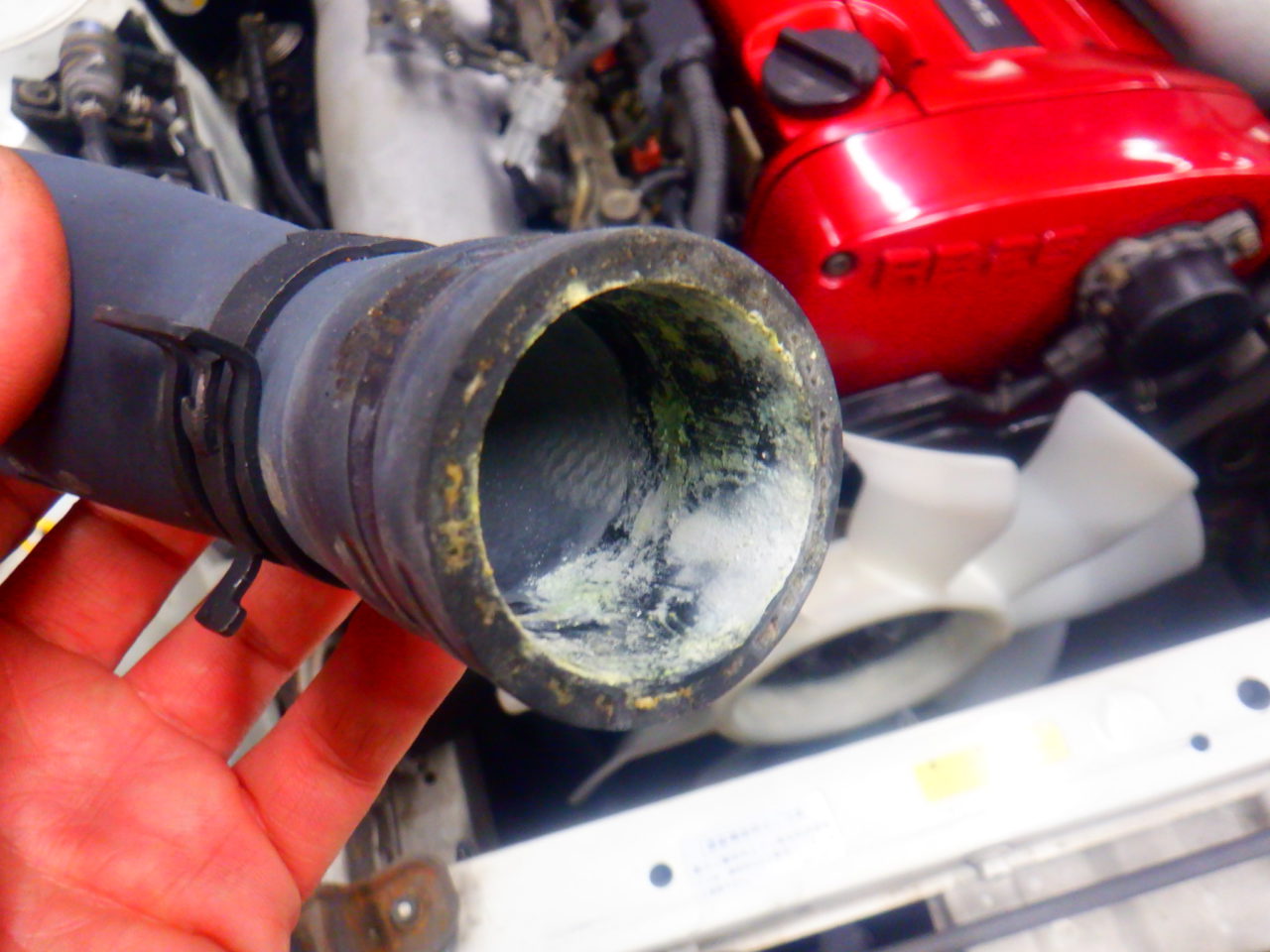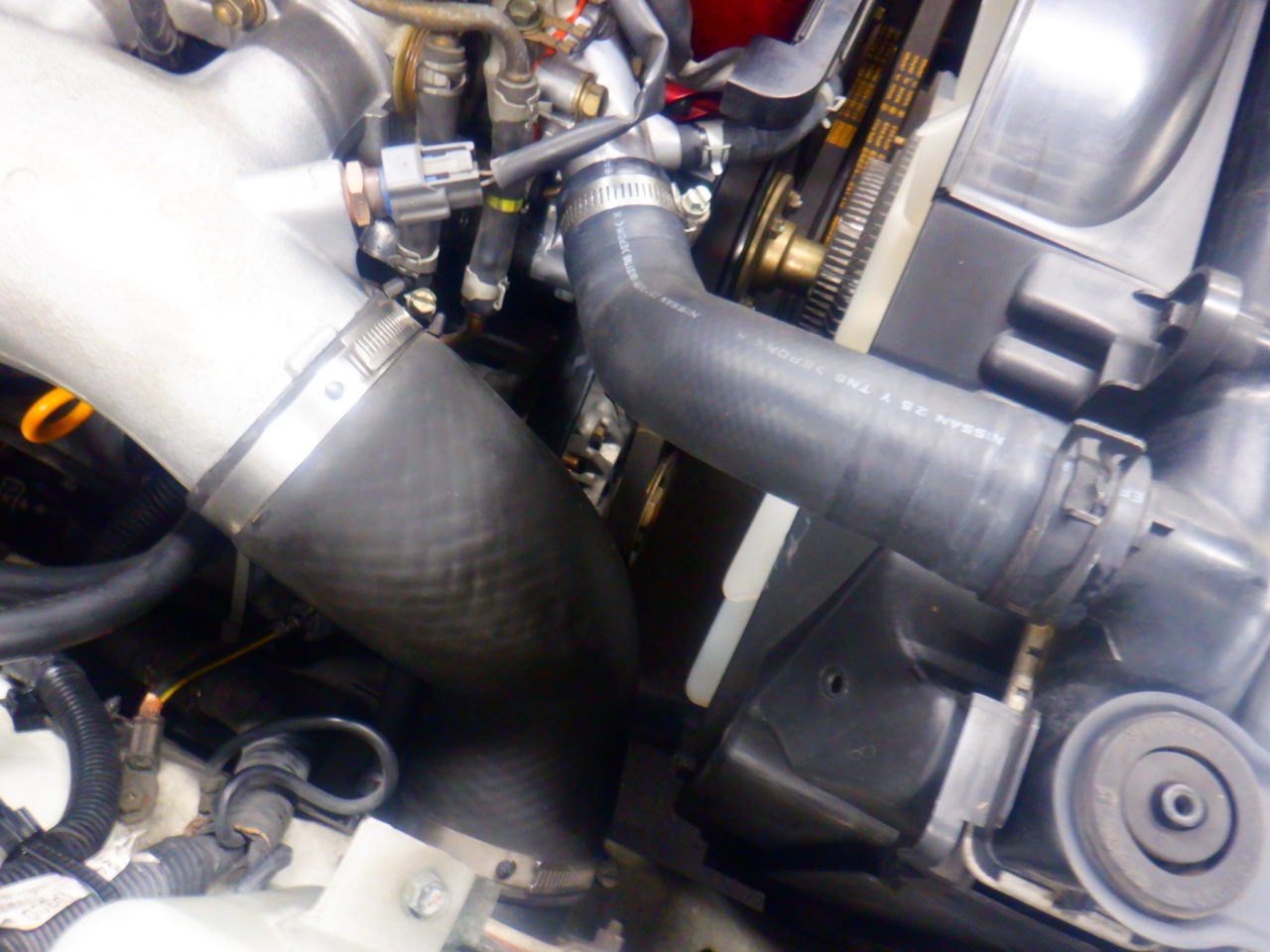 昨日エンジンを載せたBNR34は、ラジエターホースも劣化していたので交換です