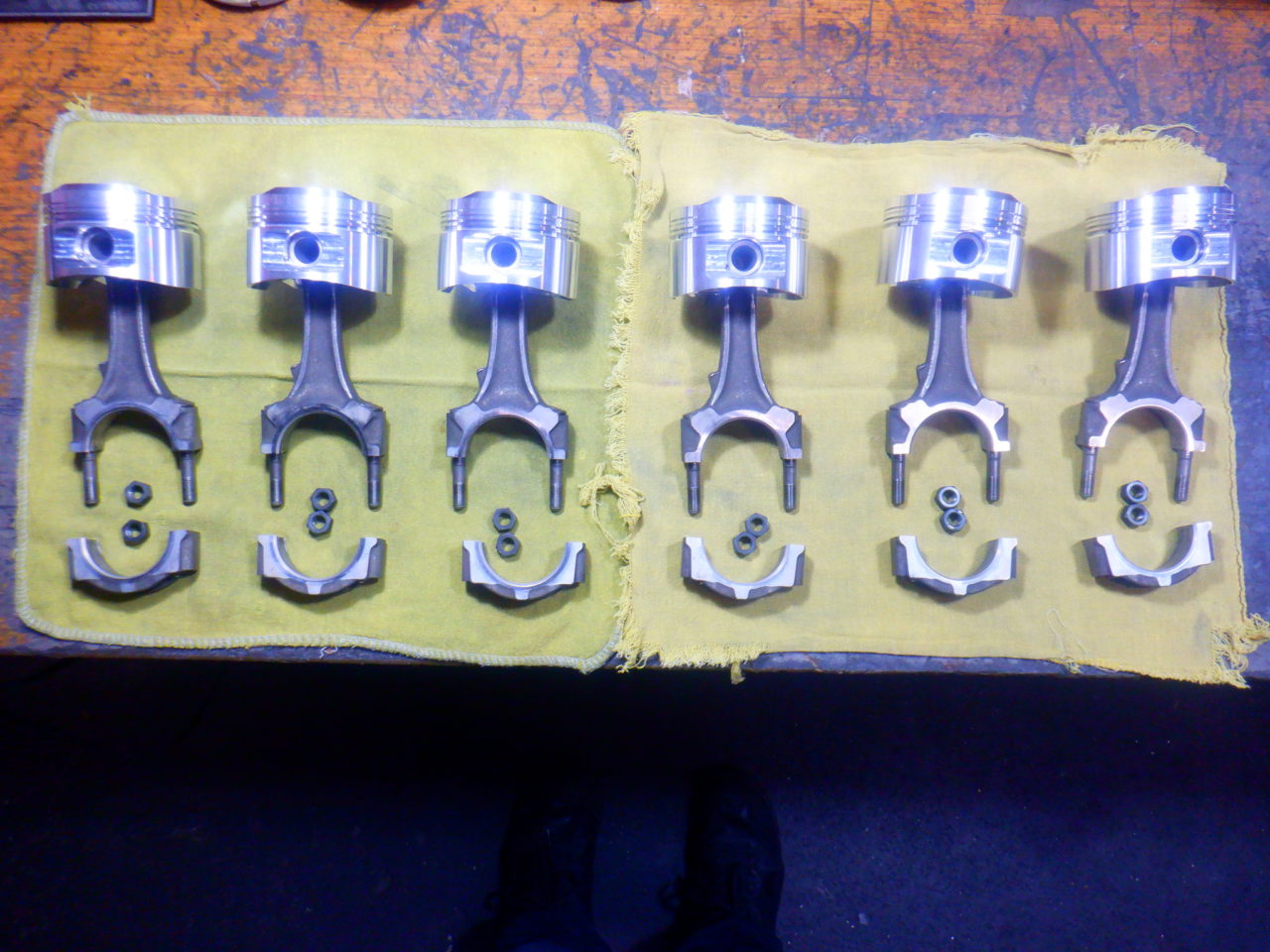 神戸市TさんBNR32のエンジンは、コンロッドのホーニング加工して鍛造ピストンの組み込み完了![]()
