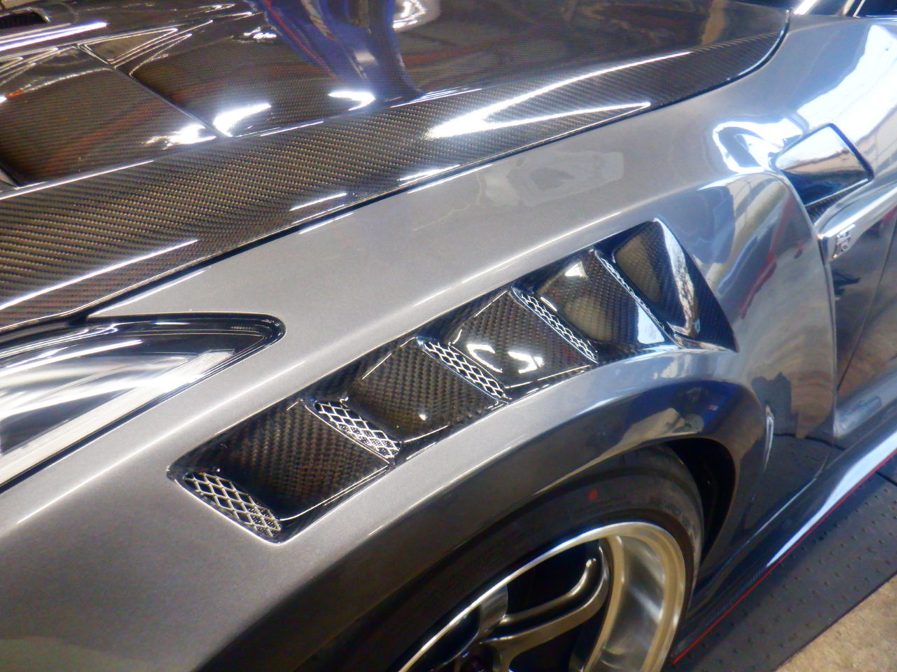 大阪府M様R35はKansaiサービスさんの新フロントワイドフェンダーの取り付けが完了しました![]()