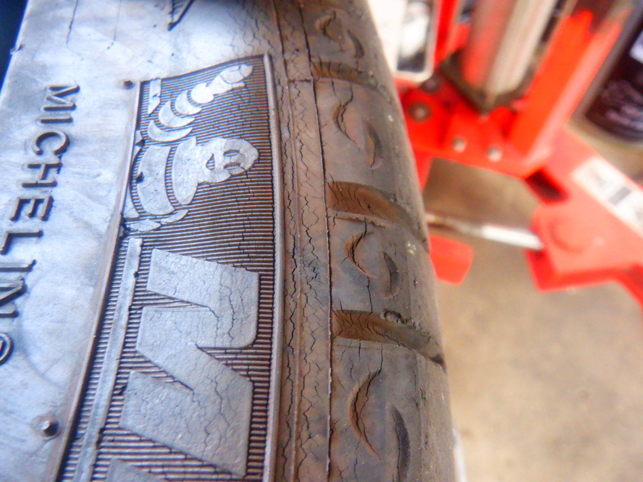 溝はまだ残っておりましたが、11年前のタイヤで?ひび割れが凄くてサイドウォールがクタクタになっておりました・・・