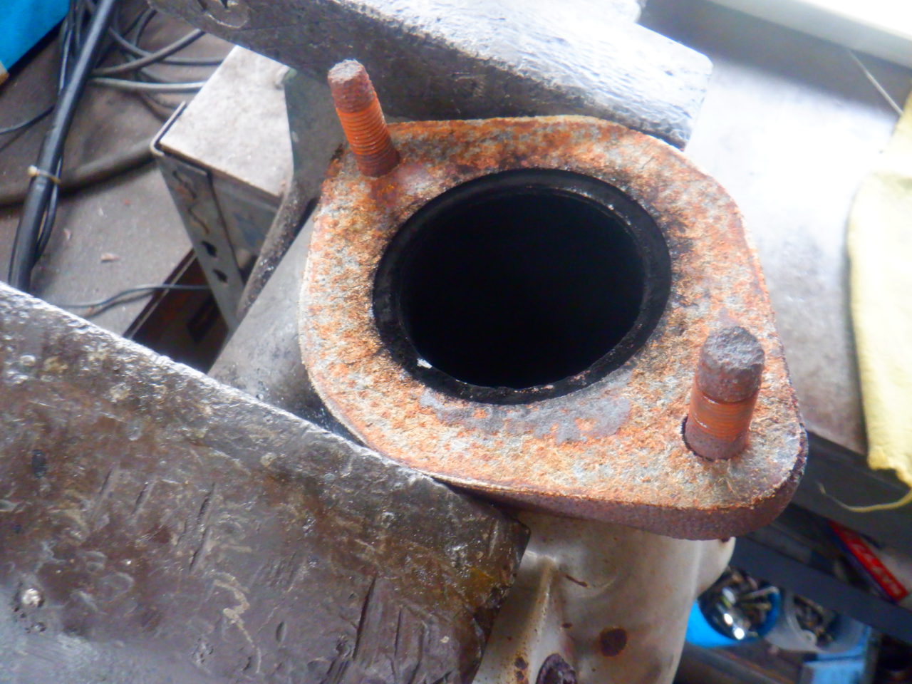 アウトレットパイプの古いガスケットがへばりついていたので、綺麗に清掃しておきました