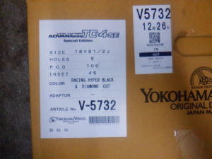 この前にご注文いただいたヨコハマ アドバンレーシング TC-4 SEが入荷しました