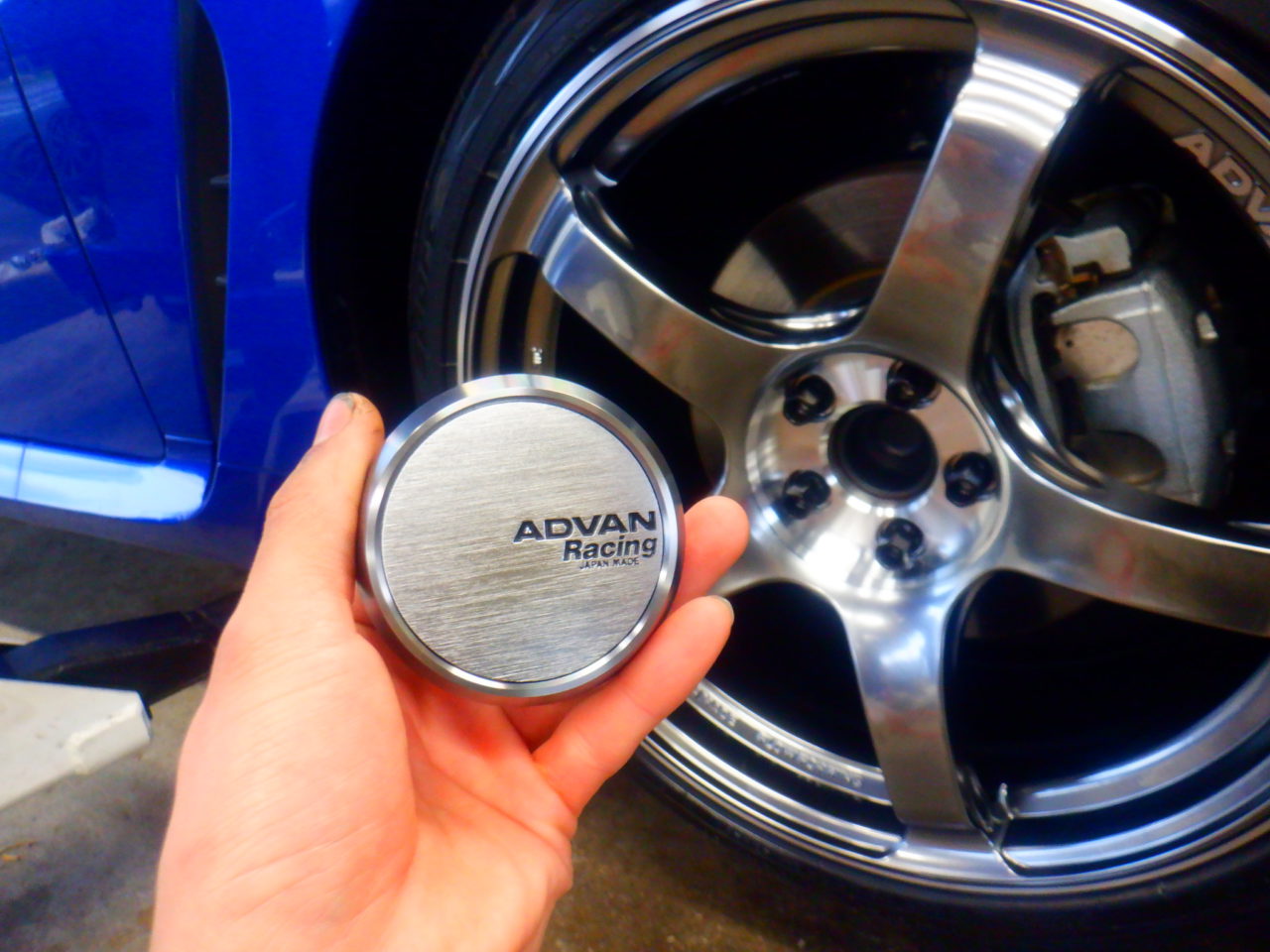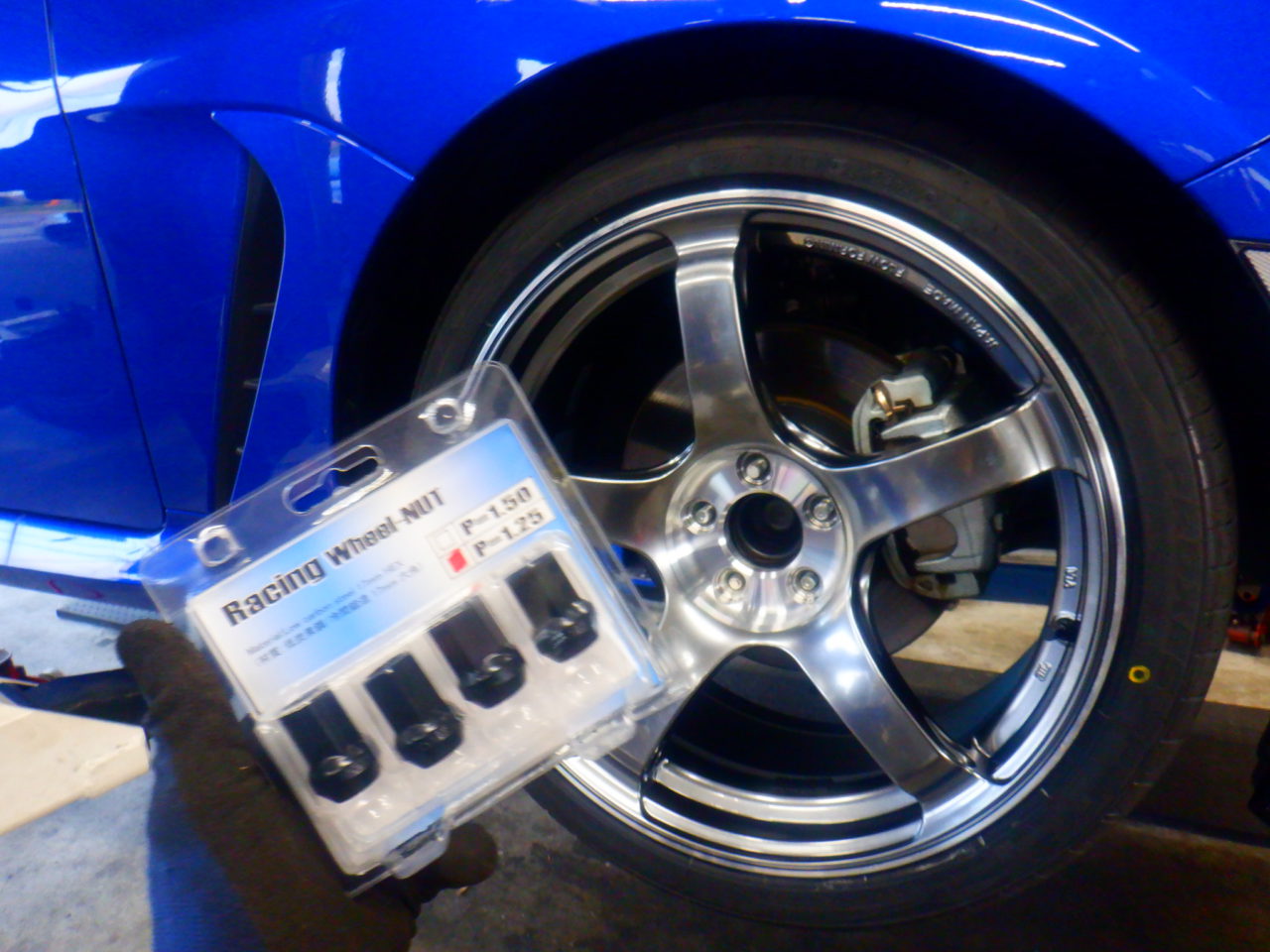 昨日組んでおいたアドバンレーシングTC-4 SE & トーヨー プロクセス スポーツ2を取り付けて、貫通レーシングナットで締め付けました