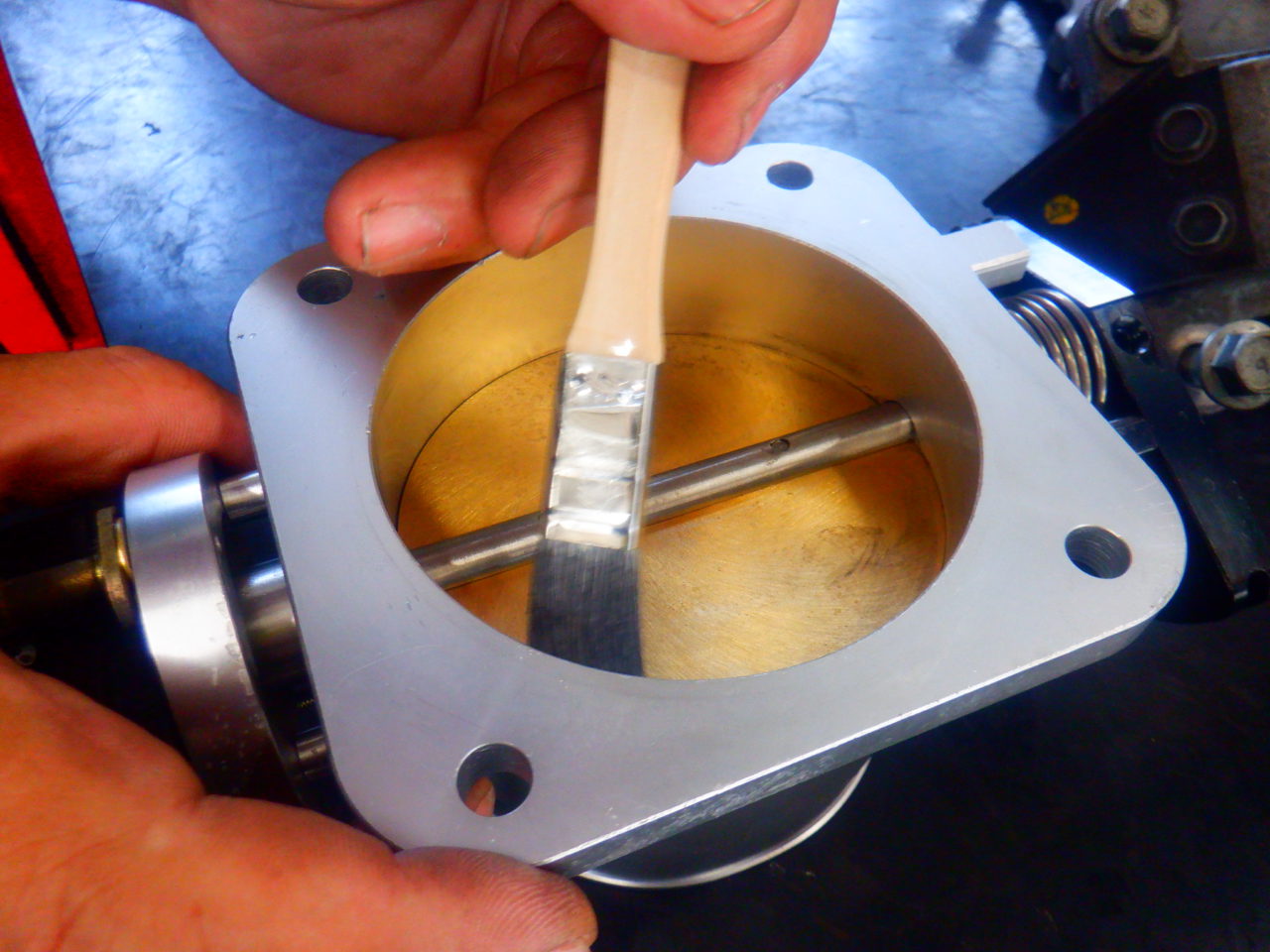 アイドリング回転数が少し高いのが気になるとの事で?スロットルにモリブデンコートを塗って下げました