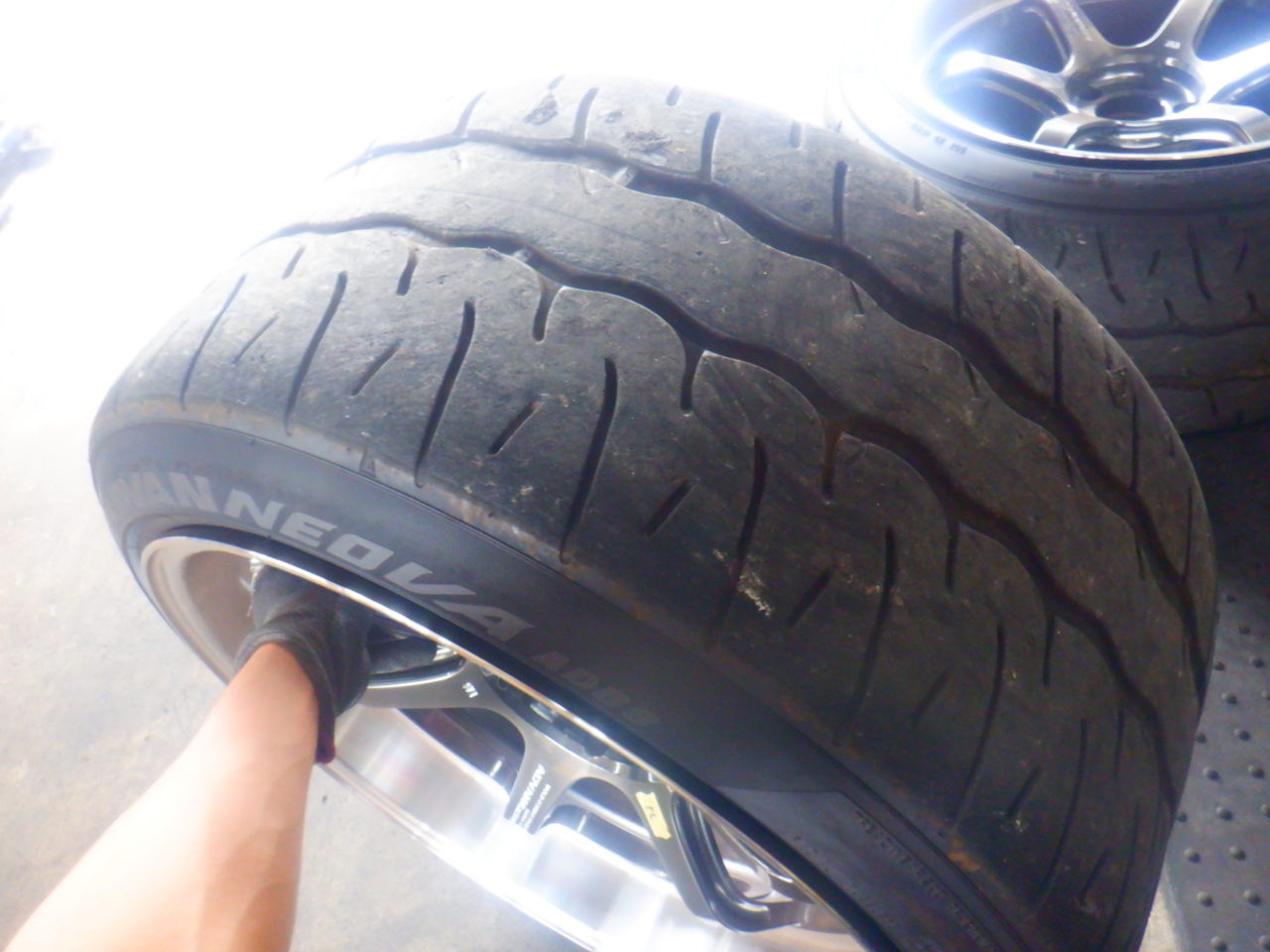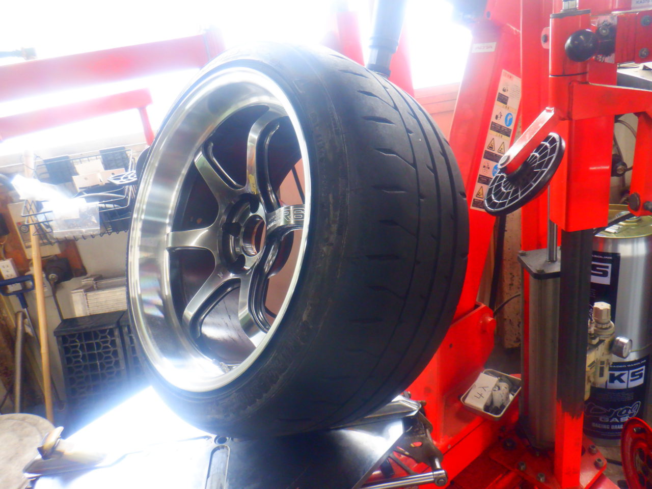 この前のサーキット走行会でタイヤのグリップに不安があったそうで?今回は在庫の71RSに入れ換えました