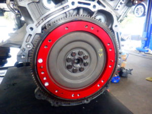 エンジンメンバーに搭載する前に、軽量フライホイールを取り付けて元に戻していきます![]()