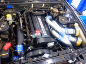 さて、神戸市TさんBNR32はラジエターホースが粉吹いて劣化しておりましたので、トラストのラジエターホースキットに交換していきます