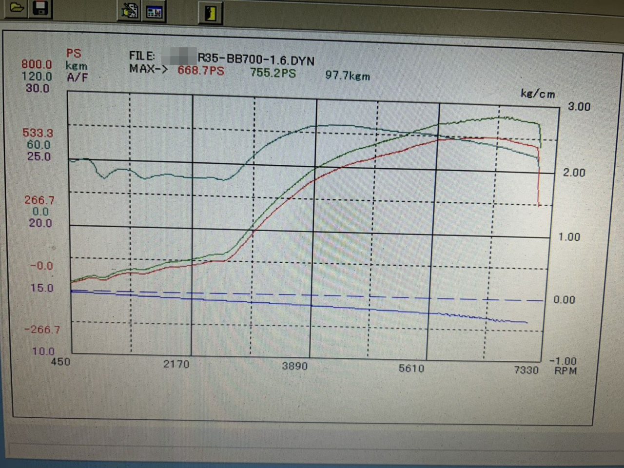 前回は680馬力ぐらいでしたが、少しズレている箇所もありましたので調整し、750馬力オーバーで完了